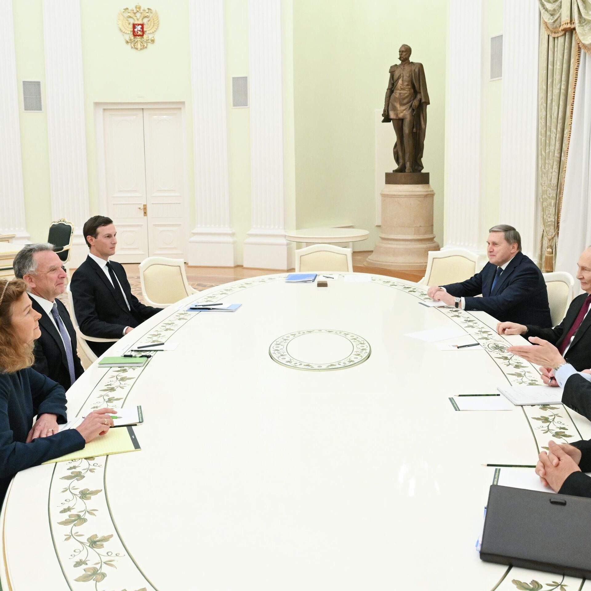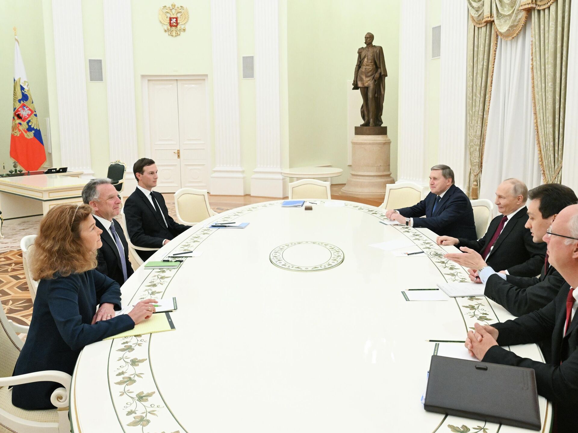 Marți seara, Putin i-a primit la Kremlin pe trimisul special al președintelui SUA, Steve Witkoff, și pe ginerele președintelui american, fondatorul companiei Affinity Partners, Jared Kushner. Din partea rusă, la întîlnire au participat și asistentul președintelui rus, Iuri Ușakov, și reprezentantul special al președintelui rus pentru cooperarea investițională și economică cu țările străine, directorul general al RFII, Kirill Dmitriev. Negocierile au durat aproape cinci ore.
